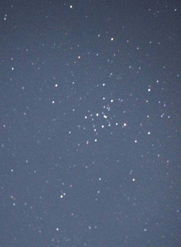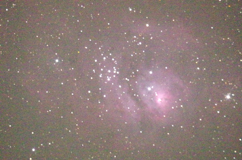 こんなときは高倍率が不要な、多少ゆらぎがあってもいいものをと、星雲星団に向けてみました。一眼レフを望遠鏡に直接つけて「望遠レンズ」として使います。