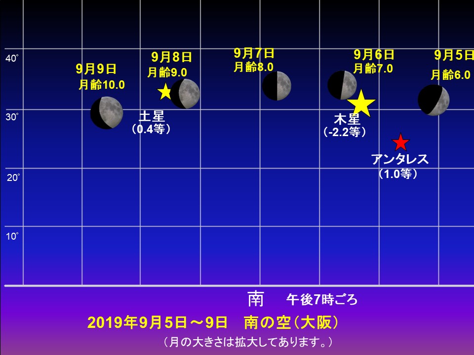 9月6日、月と木星がならぶ。8日、月と土星がならぶ。