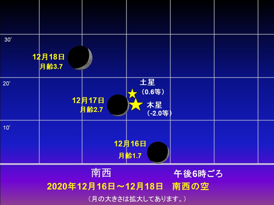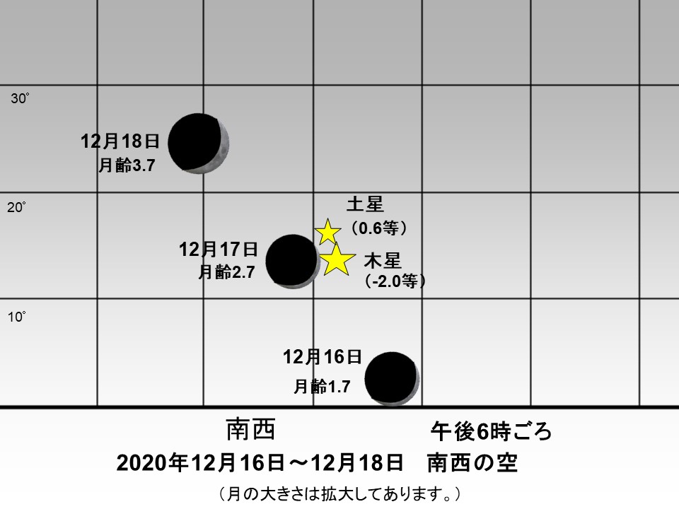 21日の木星、土星の最接近を前にこちらもすばらしい眺めとなるでしょう。