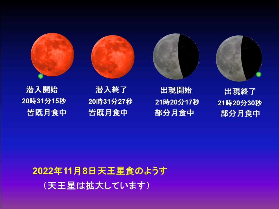 今回の皆既月食中に月が天王星を隠す天王星食が見られます。とても珍しい現象ですが、観察には望遠鏡が必要です。
